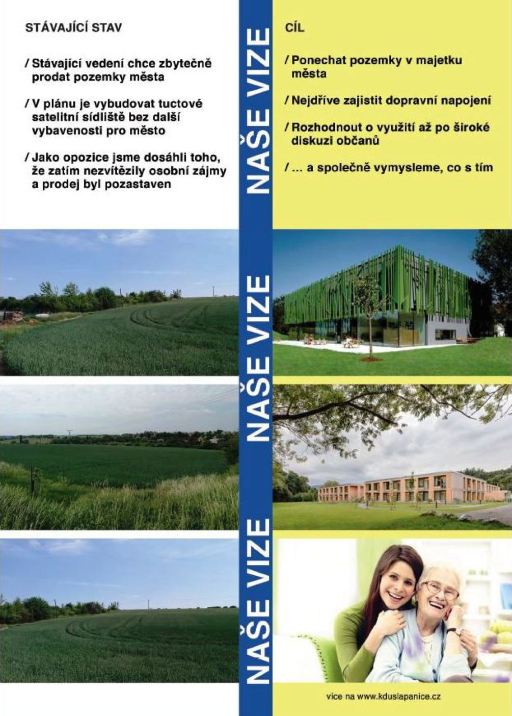 Nelze se pustit bezhlavě do prodeje pozemků, aniž by byla dořešena celková infrastruktura lokality. Návrh současného vedení města na prodej lukrativních pozemků (orné půdy) developerovi, který zde plánuje jen a pouze bydlení bez dalších služeb, je dle našeho názoru velmi nemoudrý a nehospodárný.